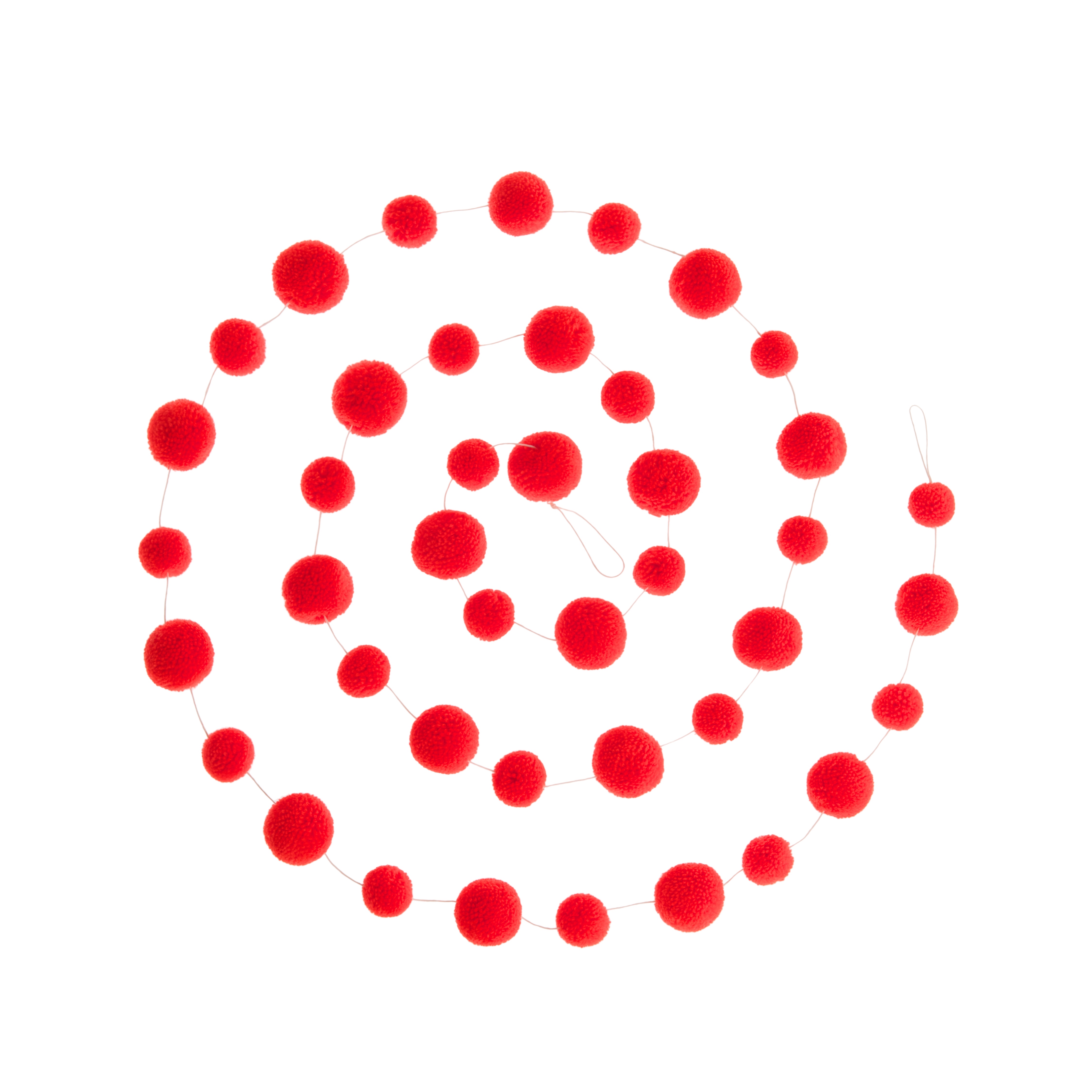 Orange pom poms on a waxed cotton 210 cm string with hanging loops at each end. Wool pom poms in 2 and 3 cm alternating along for great effect. Perfect for Halloween to festivals.