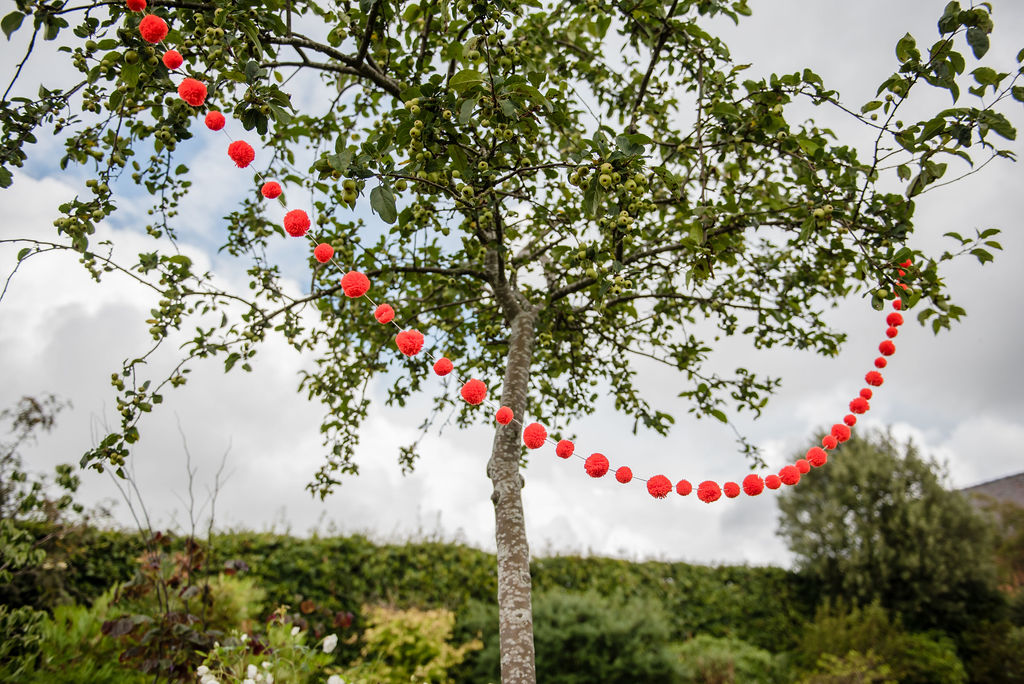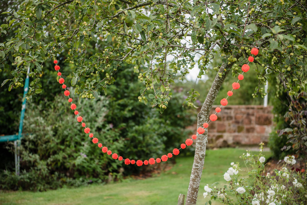 The Orange pom pom garland is a true bright Orange colour. It blends well with many of the other colours ideal for Halloween and festival themes.