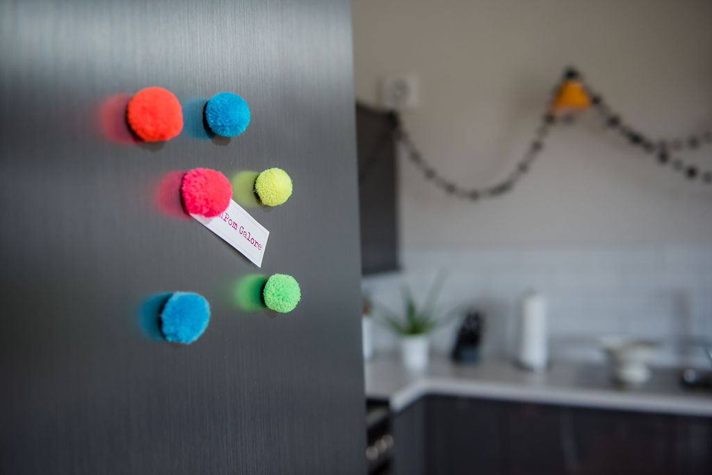 A set of 7 traditionally made yarn pom poms on super strong magnets.